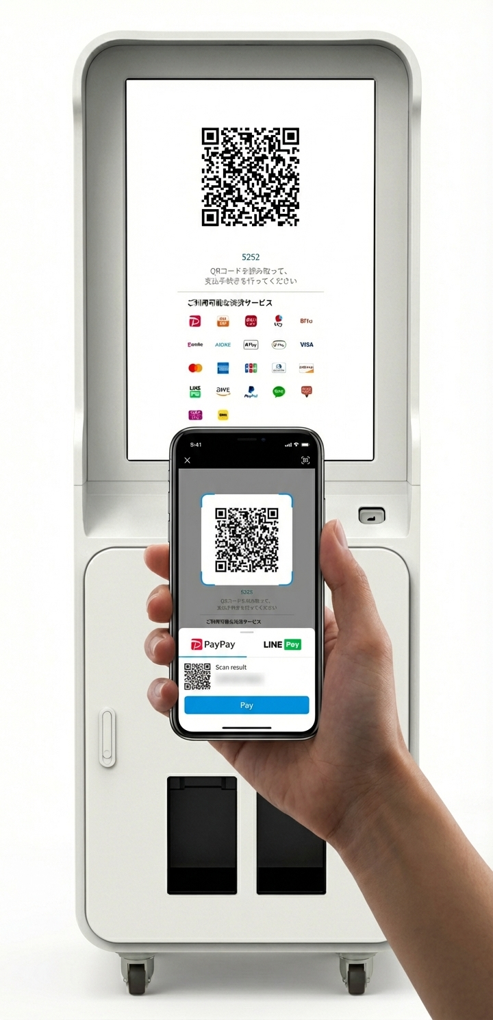 QR決済対応で小銭の集金不要。オペレーションコストを極限まで削減!